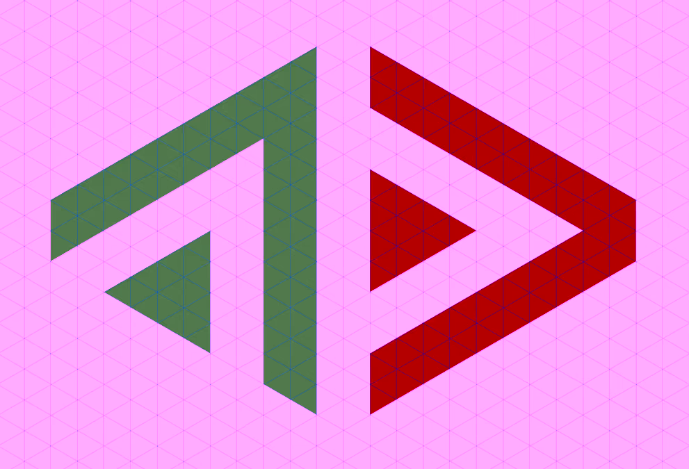 ActivityPub's symbol consists of highly stylized letters "A" and "P" formed by four disconnected shapes arranged in an axonometric grid. It brings order and direction to a number of actually disconnected parts, just like the protocol.