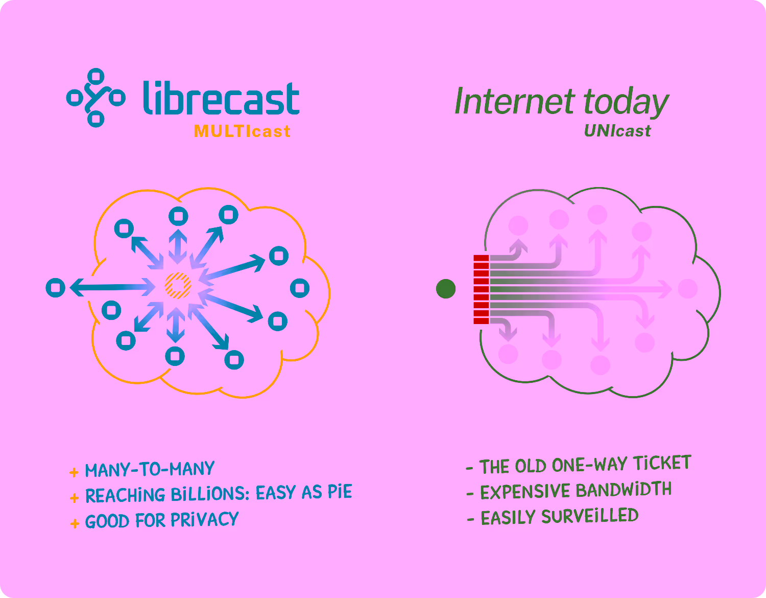 In the eyes of tech nerds Librecast seems to bend the limits of what a network can do. It connects participants in a decentralized, private and secure manner, while discarding established bandwidth concerns: