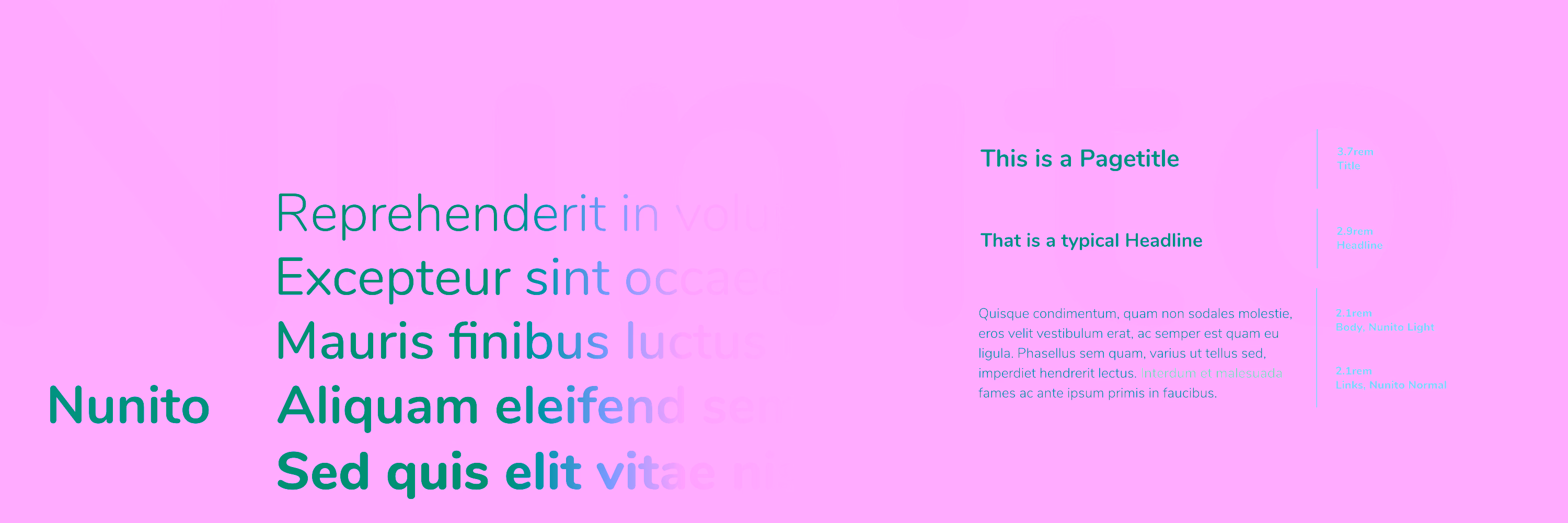 Nunito (SIL) was chosen as the main font for its qualities combining a smooth, warm feeling with a clean, trustworthy and modern impression.